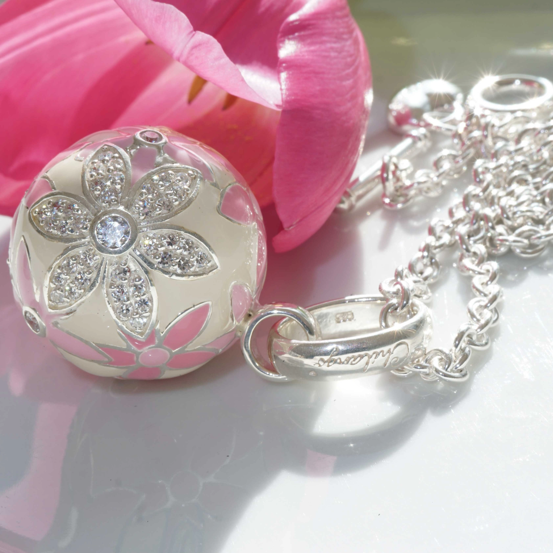 Original Chilango Anhänger im Stil Faberge Emaille Flower Pink 925er Silber mit Steinbesatz